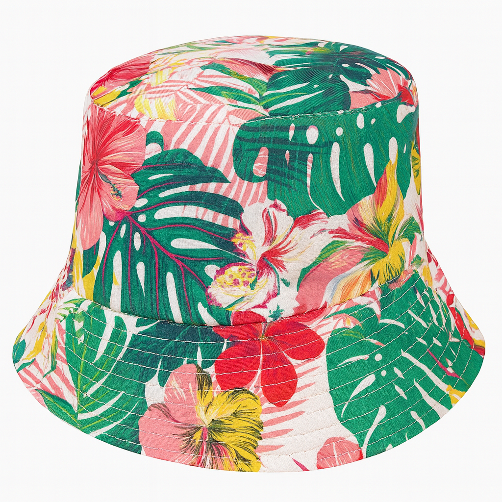 Alliant style et praticité, ce bob réversible est un indispensable pour compléter vos tenues estivales. Conçu pour s’adapter à toutes les occasions, il offre deux faces distinctes : une face à imprimé tropical vibrant pour une allure audacieuse, et une face unie sobre pour un look plus classique.